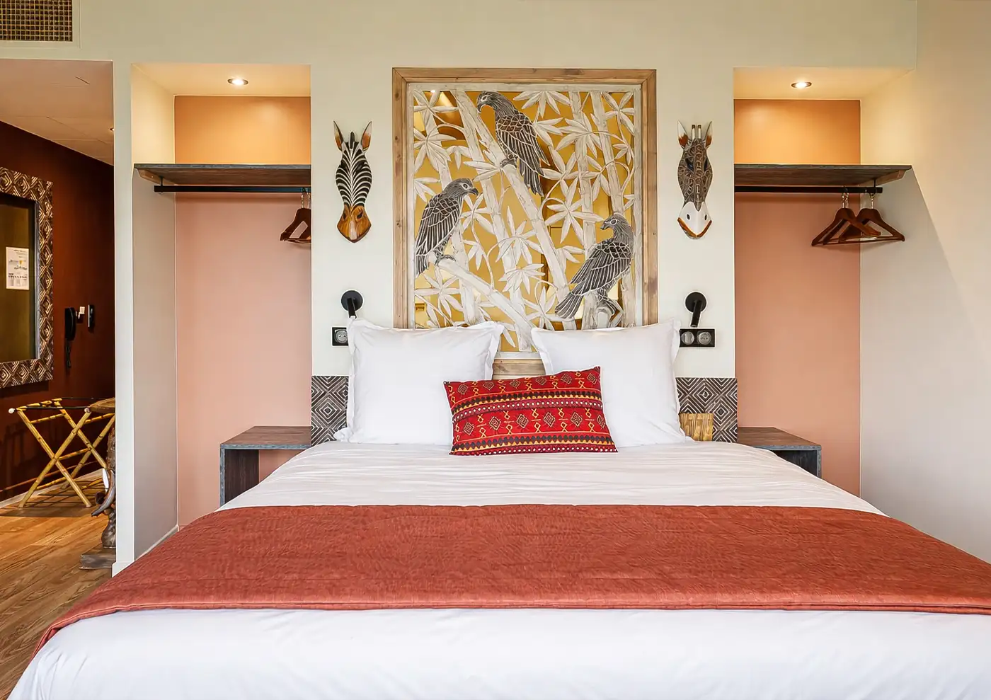Pensée pour les séjours à deux, la Chambre Premium offre un cadre intime et raffiné, où le confort haut de gamme se mêle à une immersion totale face au territoire des lions. Une invitation à vivre un moment privilégié, hors du temps. »