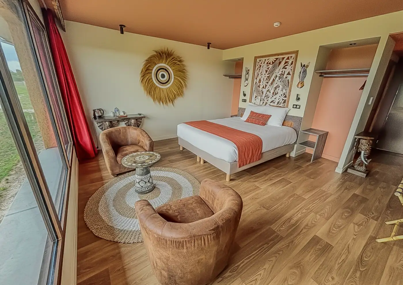 La Chambre Premium est idéale pour celles et ceux qui souhaitent vivre un séjour insolite, confortable et mémorable, au plus près du vivant, dans un cadre unique en Europe.