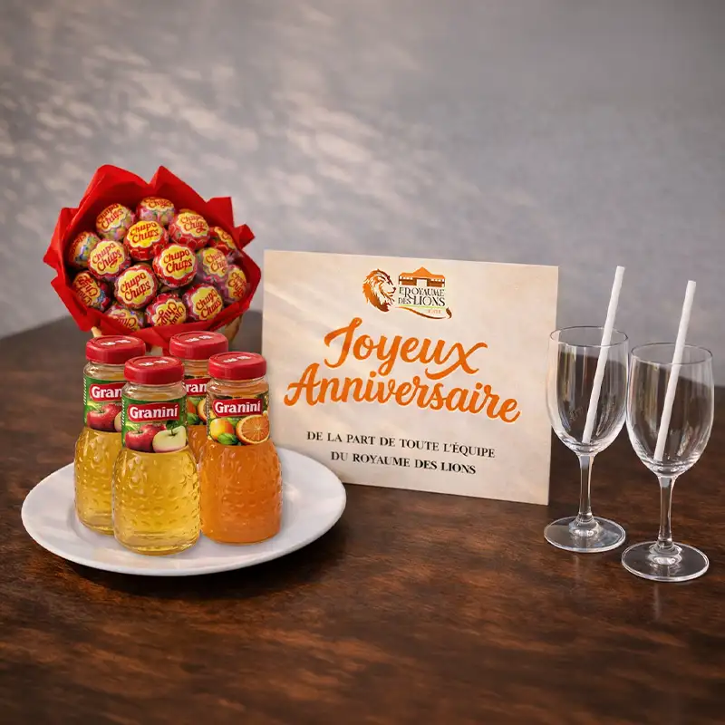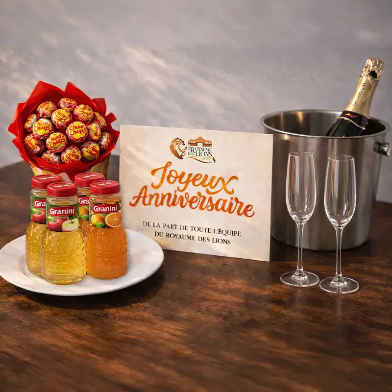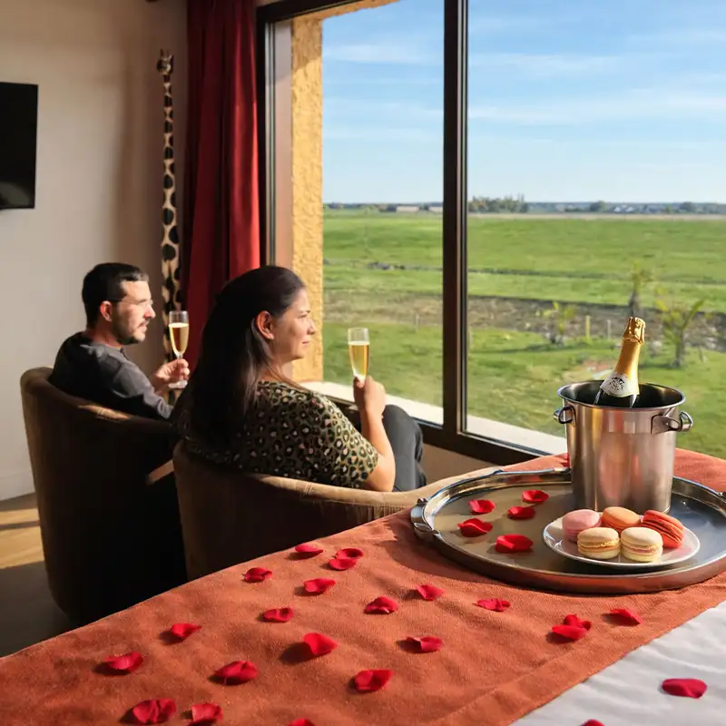Votre séjour au Royaume des Lions peut être enrichi par de nombreuses options, pensées pour transformer chaque nuit en une expérience unique et mémorable. Au sein de l’hôtel, des prestations personnalisées vous permettent de célébrer un moment particulier : attentions romantiques, surprises d’anniversaire, décorations spécifiques ou services sur mesure, pour créer une atmosphère à votre image. Pour aller encore plus loin dans l’immersion, des expériences exclusives sont également proposées au sein du Lumigny Safari Réserve. Les formules Safari VIP et Expérience Privilège offrent un regard privilégié sur le parc et ses animaux, pour vivre des instants rares et inoubliables. Notre équipe se tient à votre disposition pour vous accompagner dans le choix de ces options et composer un séjour qui vous ressemble.
